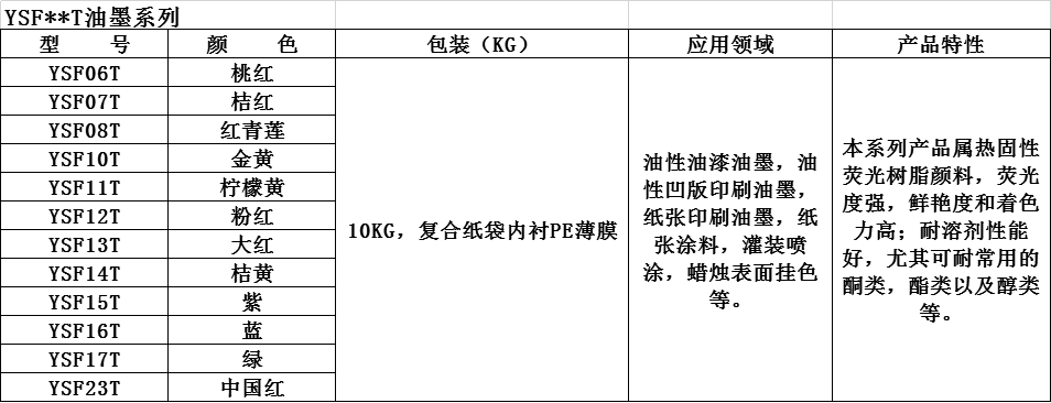 本系列產品屬熱固性熒光樹脂顏料,熒光度強,鮮艷度和著色力高;耐溶劑性能好,尤其可耐常用的酮類,酯類以及醇類等。