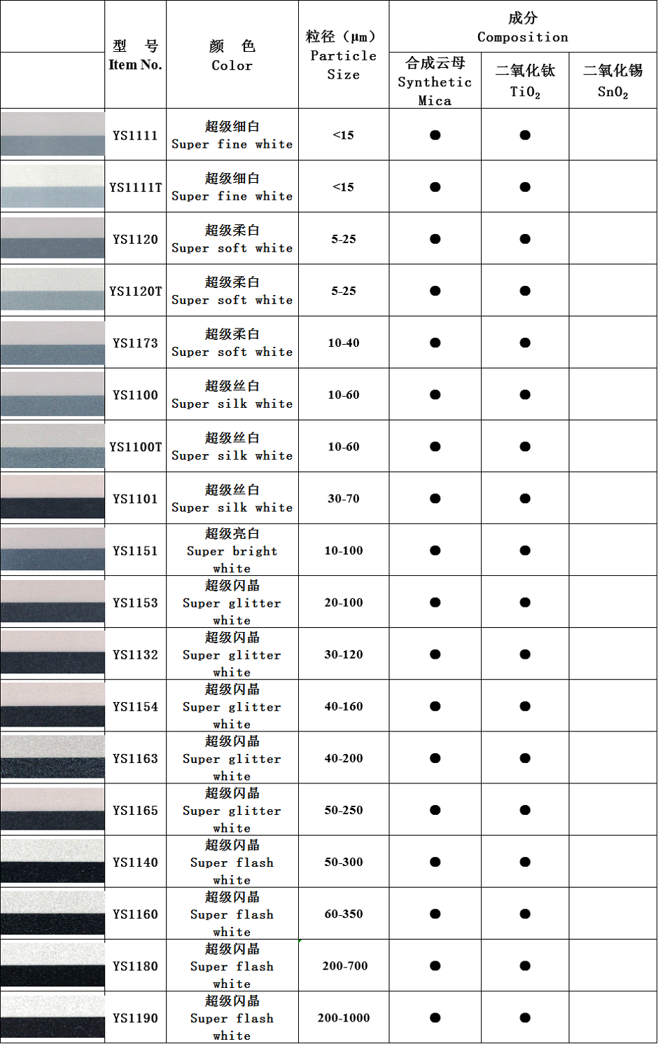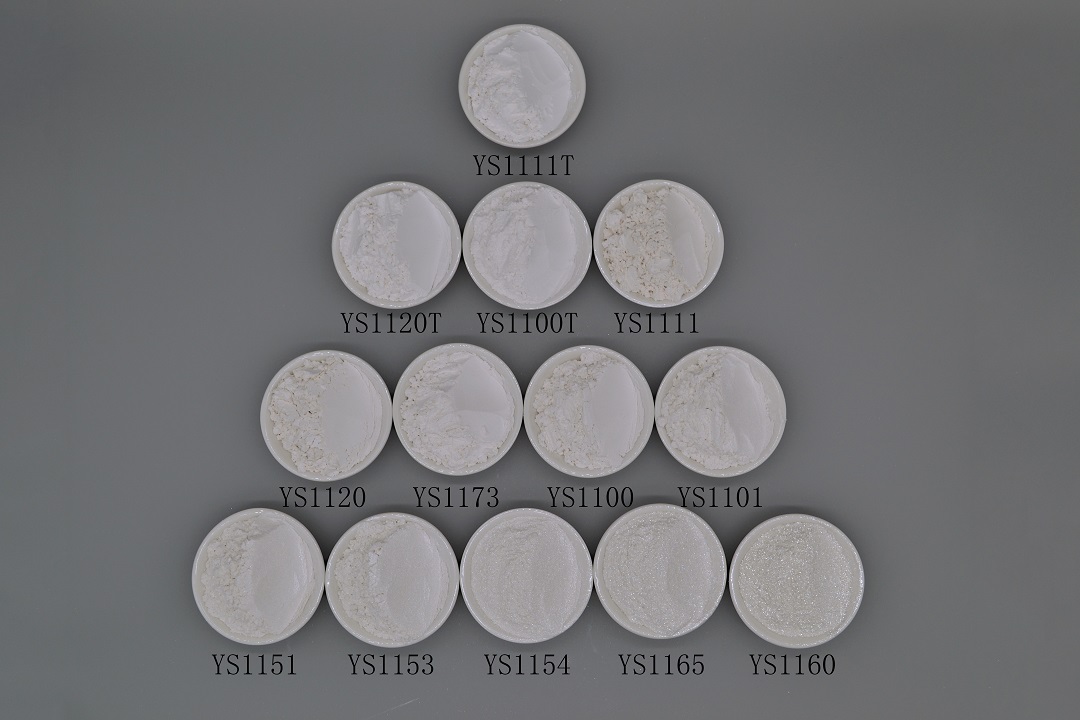 水晶珠光顏料系列:本系列產(chǎn)品以精選人工合成云母為基材,通過精準(zhǔn)控制不同金屬氧化物的包覆厚度從而產(chǎn)生閃爍奪目,璀璨亮麗的珠光效果。產(chǎn)品包括:水晶超白系列、水晶虹彩系列,水晶金色系列、水晶金屬系列、水晶彩色系列、水晶高光系列等